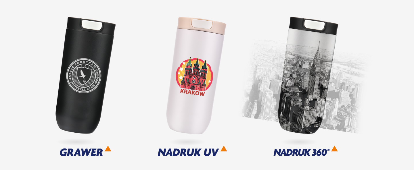 Tworzymy personalizowane kubki termiczne z grawerem, nadrukiem UV lub pełnym nadrukiem UV 360°. Zadbamy o wizerunek eventu Twojego lub Twojego klienta.